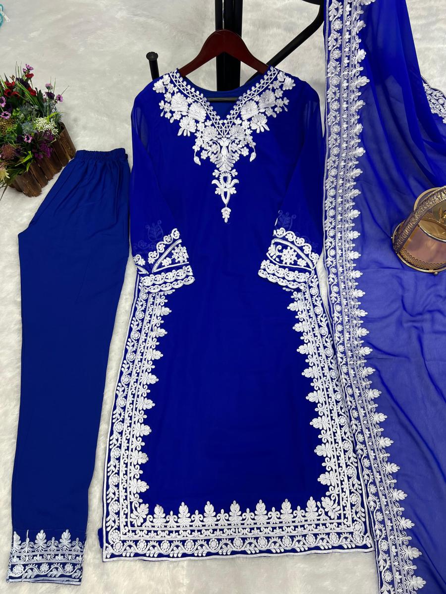 | FABRIC DETAILS | KURTI FABRIC :- HEAVY FAUX GEORGETTE. WORK :- ATTRACTIVE EMBROIDERY THREAD WORK. (ONLY FRONT SIDE)INNER : HEAVY MICRO COTTON LANGTH : 42- 44 INCH SIZE : - FREE SIZE (XL with XXL margin)PENT FABRIC :- HEAVY BUTTER SILK. WORK :- BEAUTIFUL EMBROIDERY THREAD WORK LACE BORDER. LENGTH :- 40 inch (Fully Stitched)DUPATTA FABRIC :- HEAVY FAUX GEORGETTE. WORK :- BEAUTIFUL EMBROIDERY THREAD WORK. LENGTH :- 2.10 MTR |