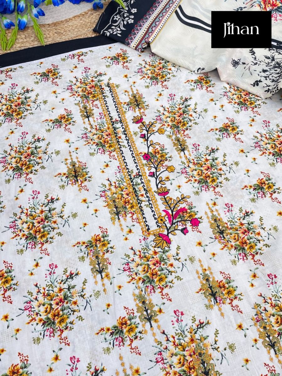 | FABRIC DETAILS | TOP:- PURE LAWN PRINT WITH EXCLUSIVE HEAVY SELF EMBRODERYBOTTOM :- SEMILAWNDUPPTA:- PURE PRINTED LAWN COTTON/CHIFFON |