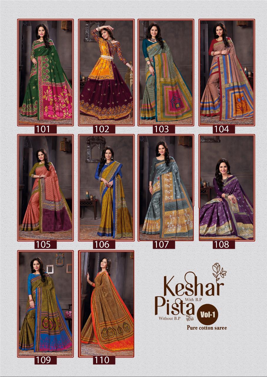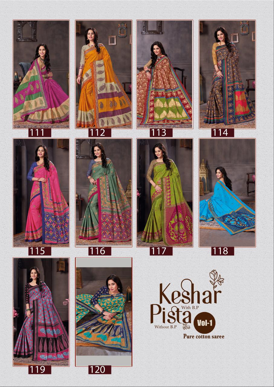 JK KESHAR PISTA VOL 1 PURE COTTON SARE | WHOLESALE