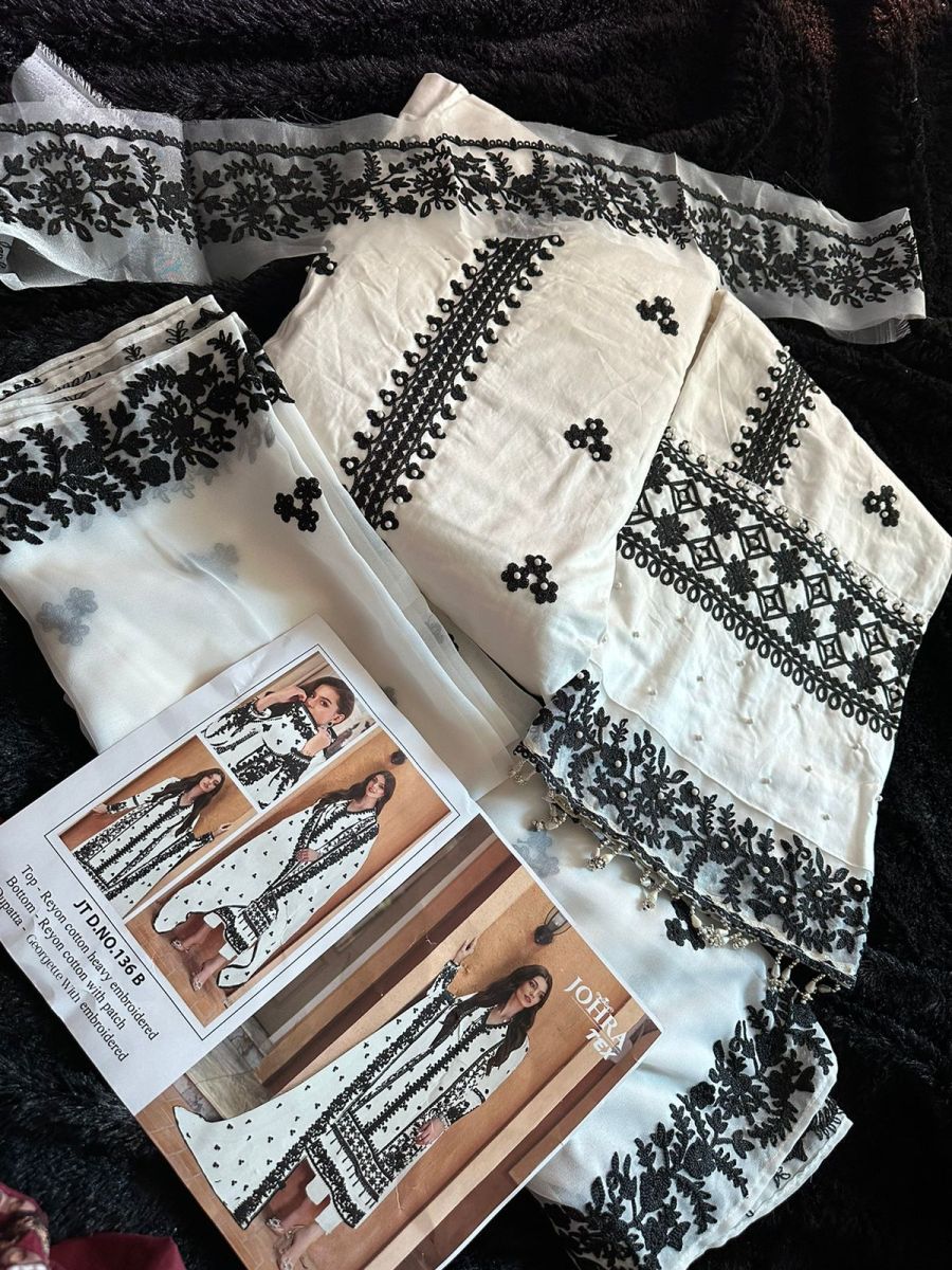 | FABRIC DETAILS | Top :- REYON COTTON HEAVY EMBROIDERED (PERALS MOTI WORK)Dupatta :GEORGETT WITH EMBROIDEREDBottom:-REYON COTTON WITH EMBROIDERED PATCH |