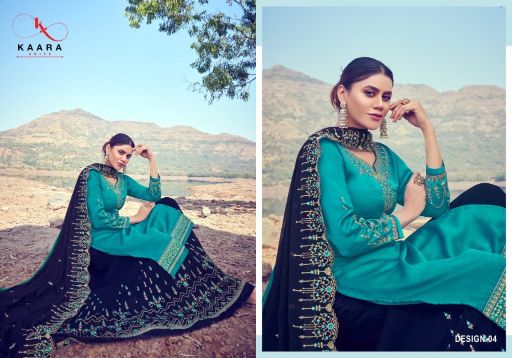 | DETAILS | *KAARA SUITS* Presents Our New Catlog Top :- *Satin Georgette with Heavy Embroidery Work & Fancy Daimond* Inner :- Santoon Bottom :- *Fox Georgette With Heavy Embroidery (Gagra Free Size Stiched) & Fancy Daimond* Dupatta :-Fox Blooming Georgette With Heavy Embroidery & Fancy Daimand Pcs :- 4 *Rate – 2199+Gst * |