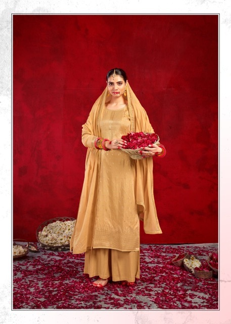 | DETAILS | **Fabric Details Top:- *Pure Muslin Dola Jequard* Bottom:- *Santoon* Dupatta:- *Pure Mal With Work*Total Design:- 06** |