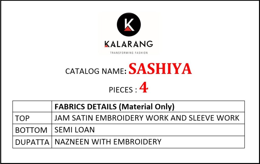 | DETAILS | Top:- Jam Satin Embroidery Work and Sleeve Work |