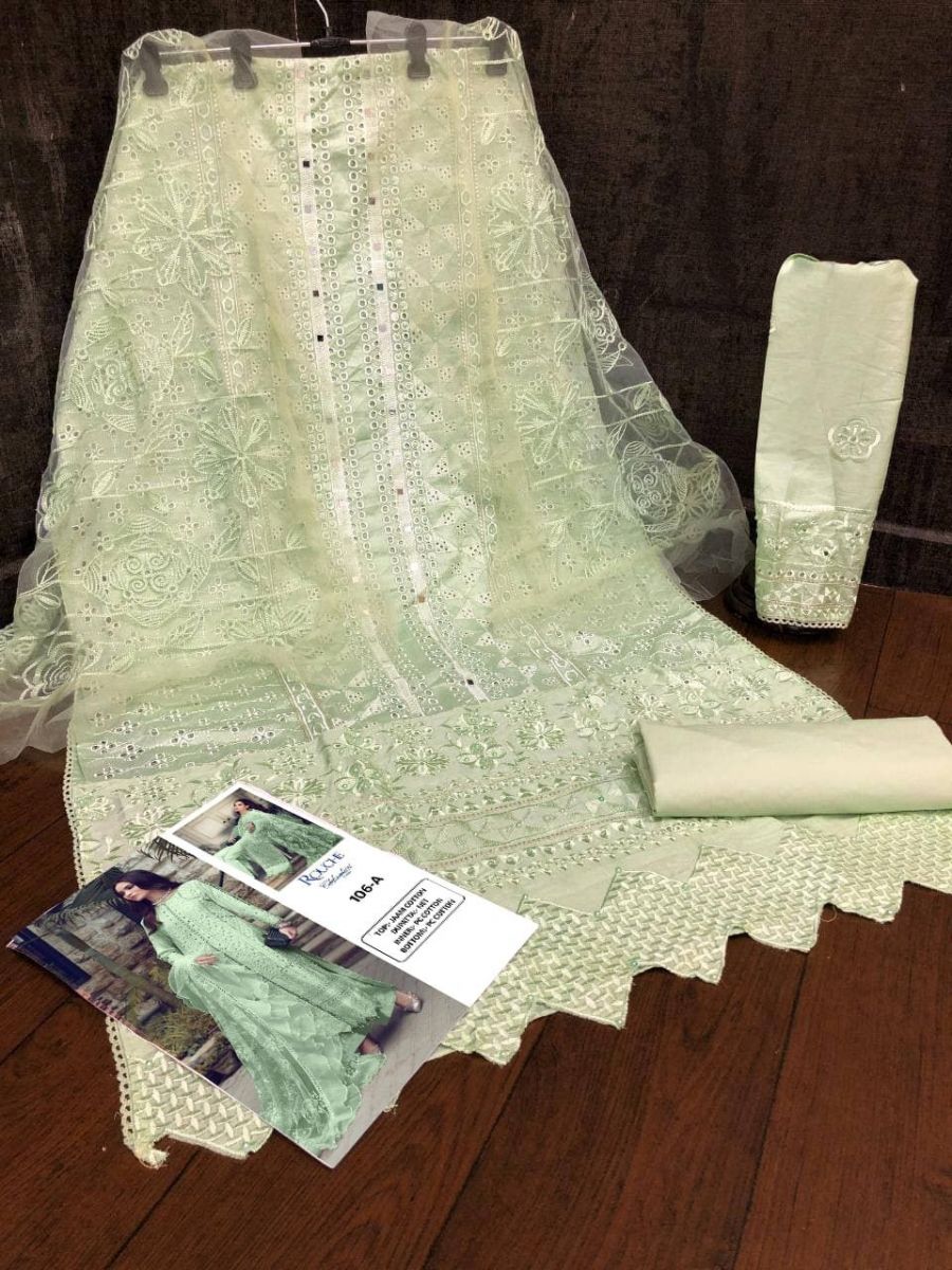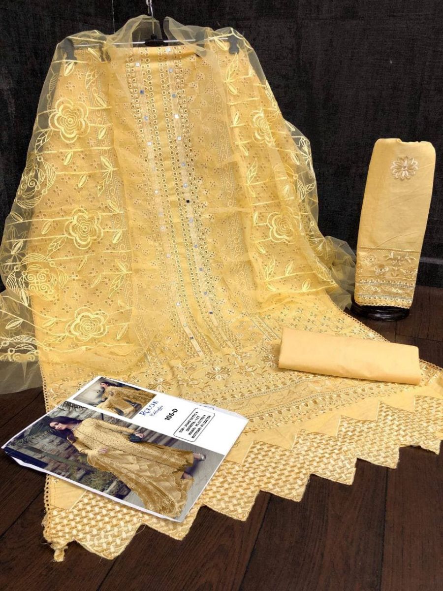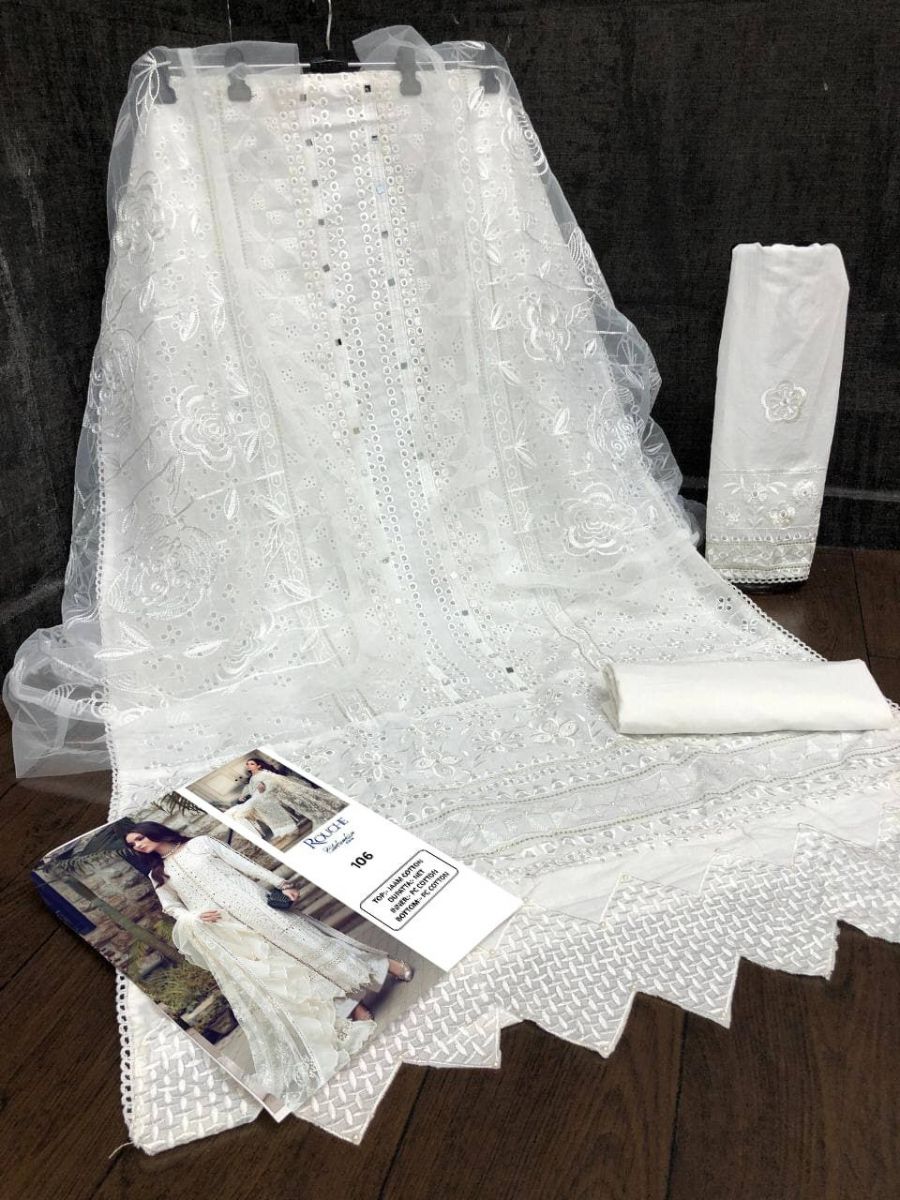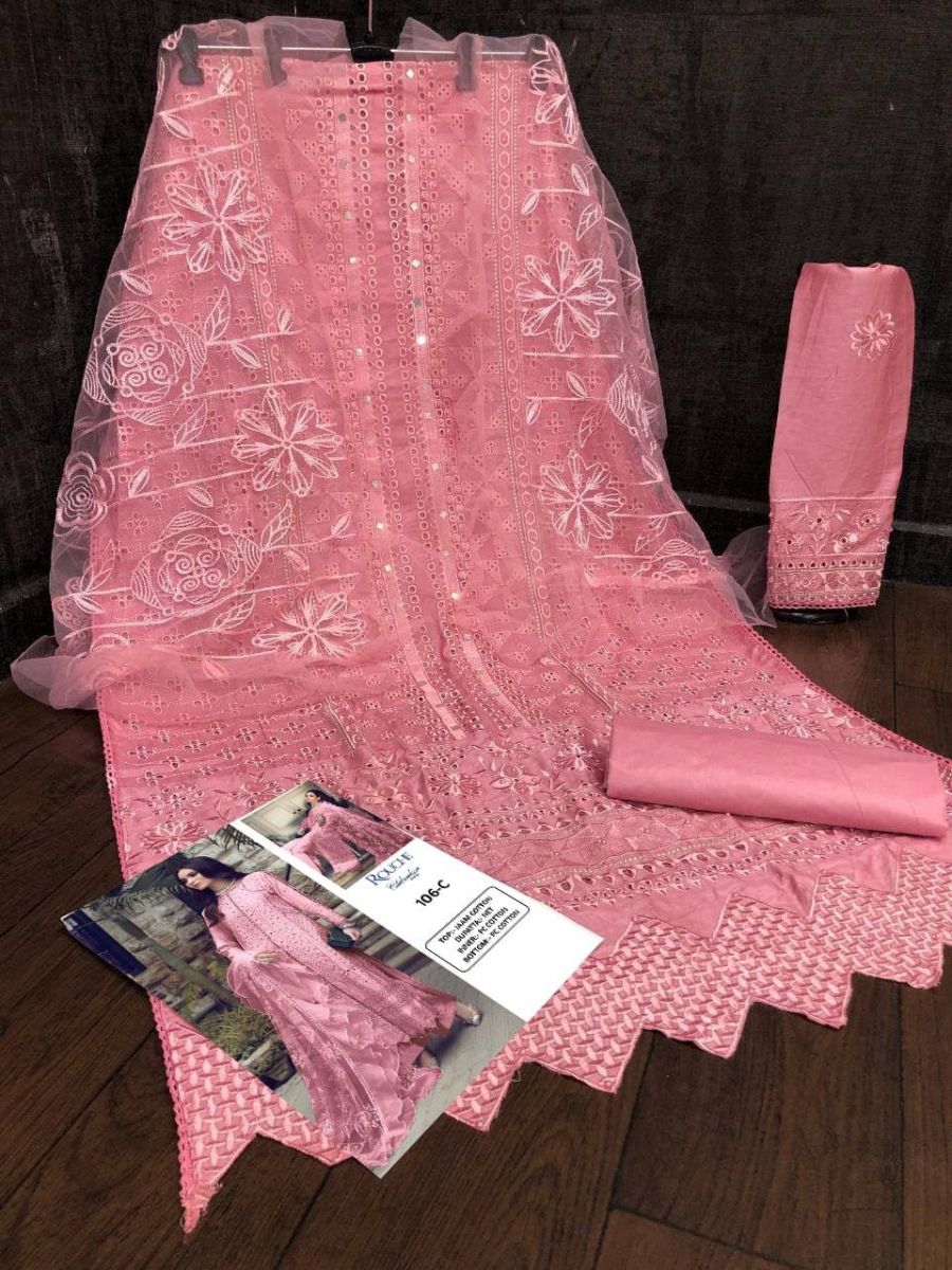 | DETAILS | *.Fabric Details:- *Top* :- Heavy Pure Jaam Cotton with Heavy Embroidery Borring work Sleeves :- Heavy Pure Jaam Cotton with Heavy Embroidery Borring work*Bottom* :- Heavy Pure PC Cotton*Dupatta* :-Heavy Net With Heavy Embroidery Chain Work DupattaLength :- Max up to 50” Size :- upto 58 Addition :- Side Ready Made Pure Cotton Lase Type :- Semi Stitched ( Material ) Weight:- 1kg |