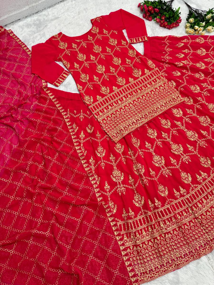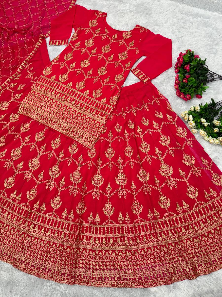 | FABRIC DETAILS | LEHENGA #LAHENGA FABRICS : HEAVY FUAX GEORGEET #LEHENGAS WORK : HEAVY CHINE STITCH WORK *3 MTR FLAIR #LEHENGAS INNER : MICRO COTTON #SEMI STITCHED UP TO 44" SIZETOP #TOP FABRICS : HEAVY FUAX GEORGEET #TOP SIZE : 42 INCHES WITH 44 MARGIN #TOP LENGTH : 35 INCHES #TOP INNER : MICRO COTTON #TOP WORK : CHINE STITCH WORK #TOP SLEEVES : FULL SLEEVES WITH WORKDUPATTA #DUPATTA FABRICS : HEAVY FUAX GEORGEET #DUPATTA WORK : FULL CHINE STITCH WORK WITH 4 SIDE WORK LESS BODER #DUPATTA SIZE : 2.10 - 2.20 MTR |