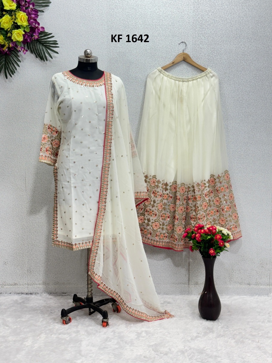 | FABRIC DETAILS | #TOP FABRICS : FUAX GEORGETTE #TOP SIZE : FULL STITCHED FREE SIZE #TOP LENGTH : 41 INCHED #TOP INNER : MICRO COTTON #WORK : HEAVY EMBROIDERY SEQUENCES WORK #SLEEVES : FULL EMBROIDERED SEQUENCES WORK#PLAZZO FABRICS : FUAX GEORGETTE #PLAZZO LENGTH : 40 INCHED #PLAZZO SIZE : FULL STITCHED ( FREE SIZE ) #PLAZZO WORK : EMBROIDERED SEQUINS WORK#DUPATTA : FUAX GEORGETTE #DUPATTA WORK : FULl EMBROIDERED SEQUINS WORK LESS BODER #DUPATTA SIZE : 2.10-2.20 MTR |