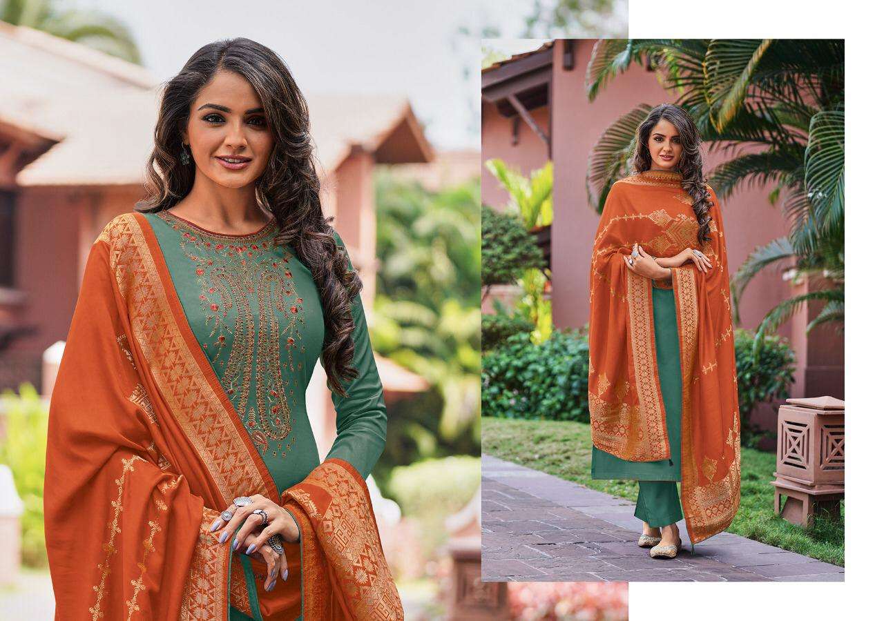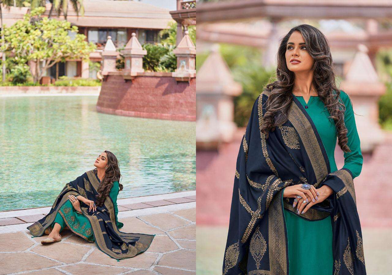 | DETAILS | Top- CHINON /PARAMPARA SILK WITH KASHMIRI STYLE WORK (2.5 MTR) BOTTOM: DULL SANTOON (2.5 MTR) Duppata- PURE MODAL JEQUARD WEAVING DUPATTA(2.30 MTR) |