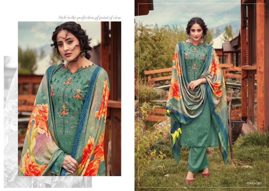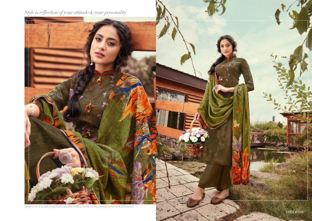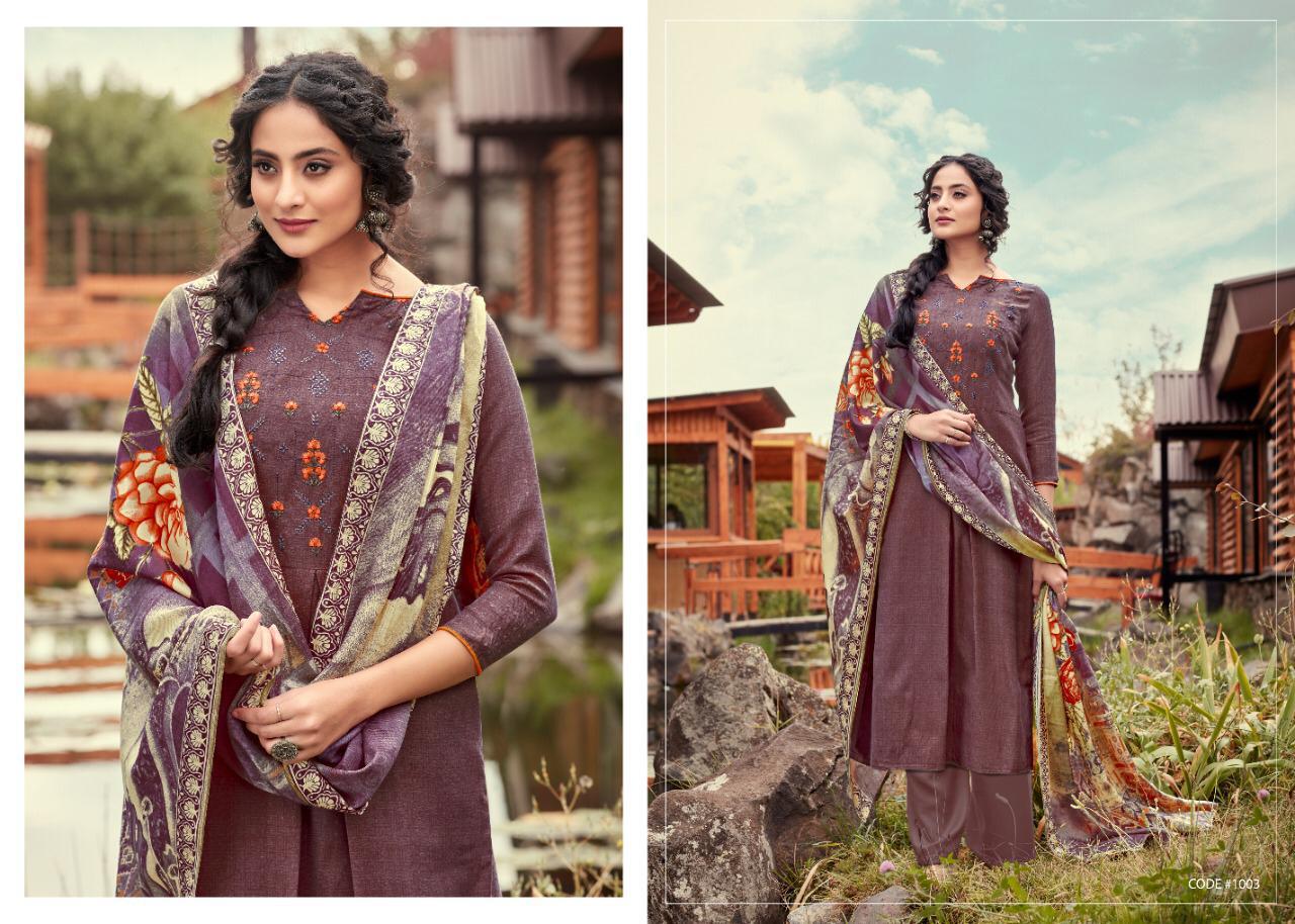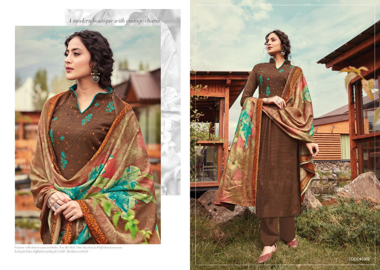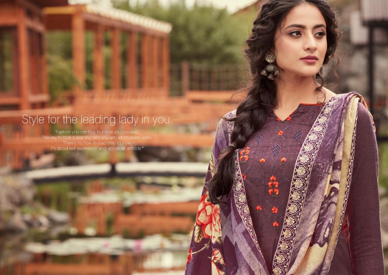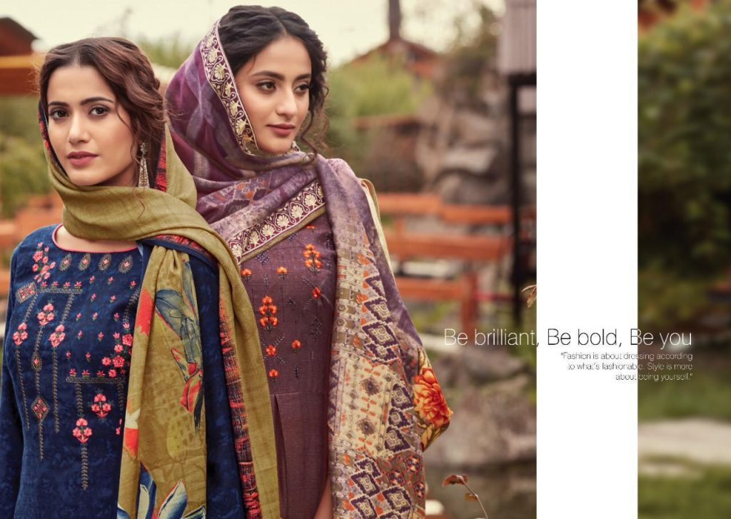 | DETAILS | ?Top: 100% Pure Pashmina Print with Fancy self Embroidery work. (2.50 mtrs) ?Dupatta: 100% Pure Pashmina Printed Digital style box pallu(2.50 mtr) ?Bottom: pure pashmina dying (3 mtrs apx) |