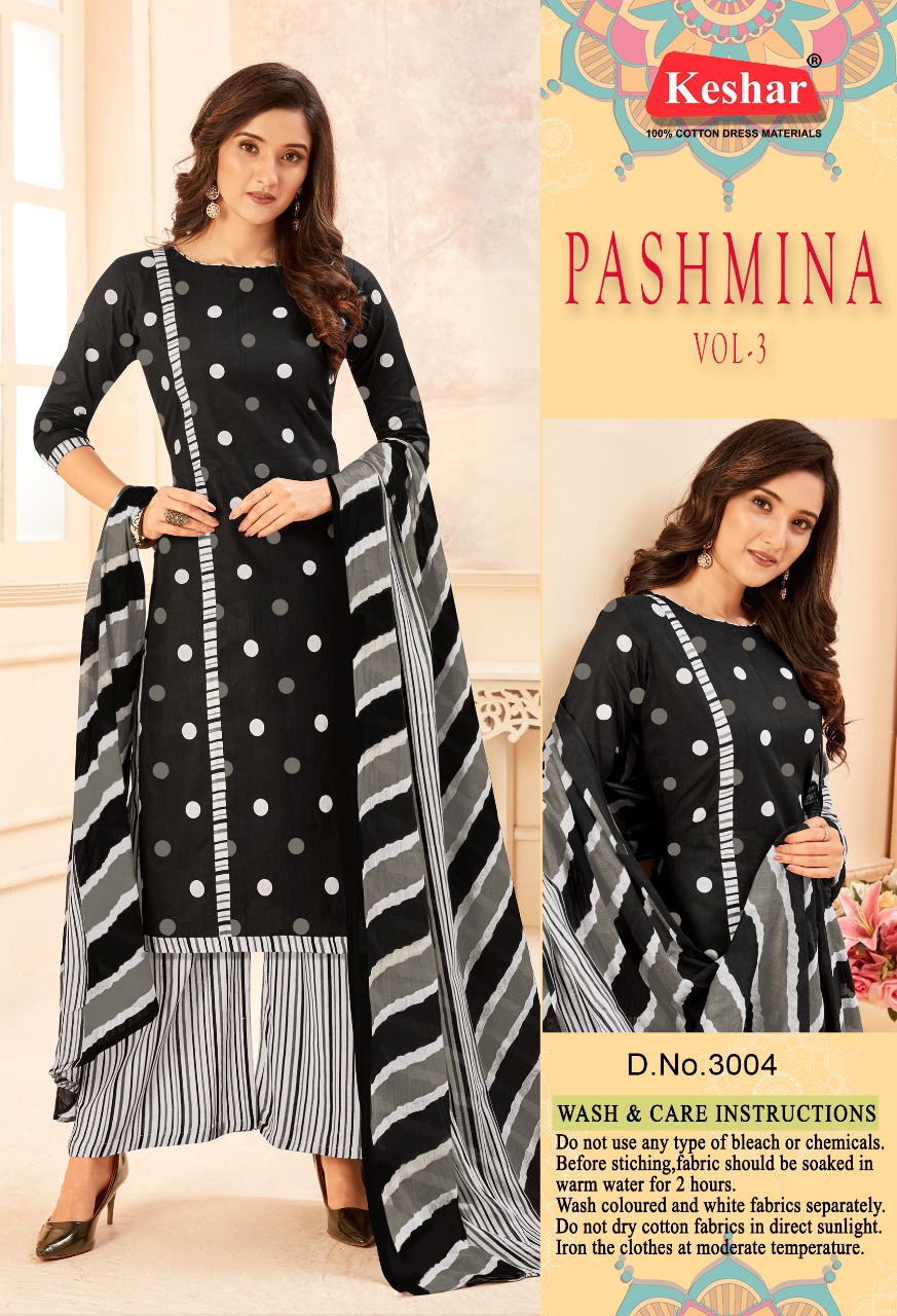| DETAILS | *KESHAR* PASIMINA VOL 3 *COTTON DUPATTA* TOP = 2.35MTS DESIGNS = 10 NET PRICE 300/- |