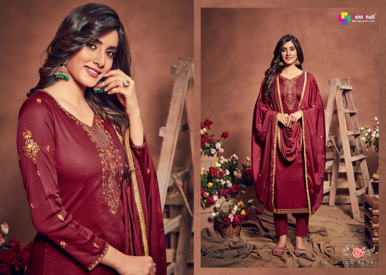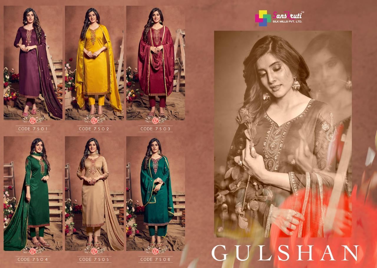 SANSKRUTI SILK MILLS GULSHAN 7501-7506 SERIES LADIES SUITS WHOLESALER