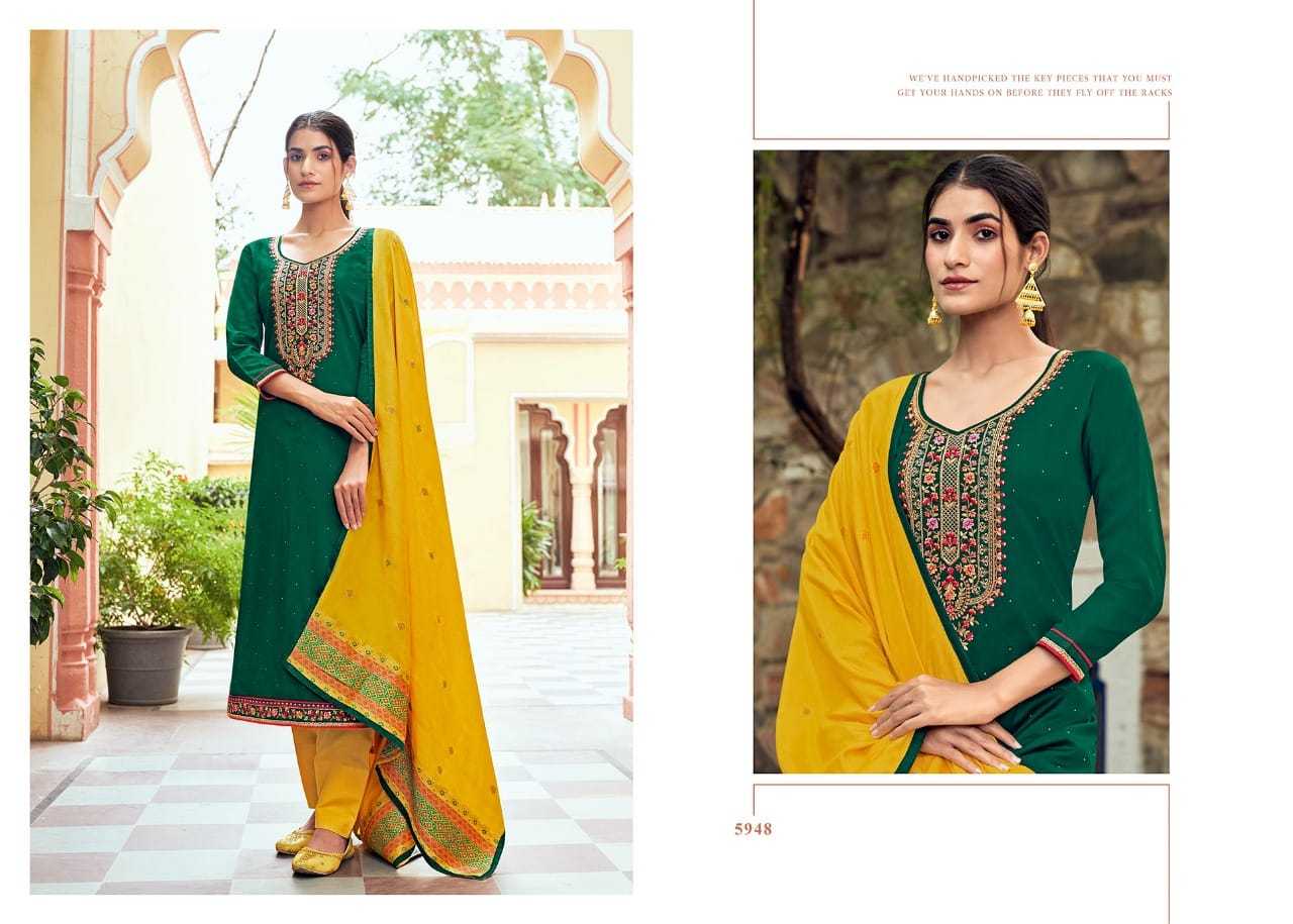 | DETAILS | Fabric Details Top:- *Jam Silk Work with Swarovski Dimond Work*Bottom:- *Solid Cotton* Dupatta:- *Pure Muslin JEQARD* Total Design:- 8 |