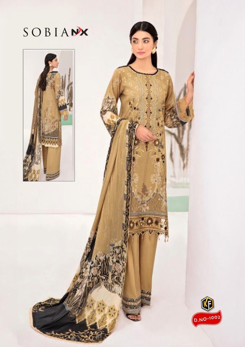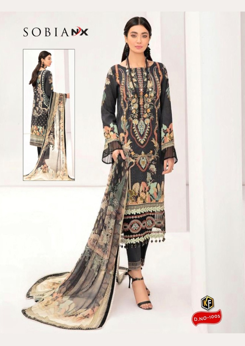 | DETAILS | **Catalogue Name:* *"SOBIA NX"* *EXCLUSIVE KARACHI COLLECTION WITH EXPANSIVE DESINGER COLLECTION * *Details* *Fabrics - HEAVY COTTON PRINT* *CUT *TOP: - 2.50Mtr* *BOTTOM-2.00 Mtr* *DUPATTA.- 2.25mtr ( Heavy Mal Mal Dupatta)* |