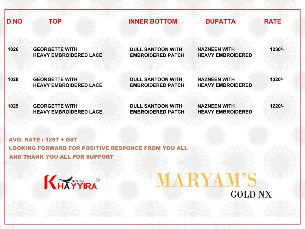 KHAYYIRA MARYAM’S GOLD NX DESIGN NO 1026 TO 1029 | WHOLESALE