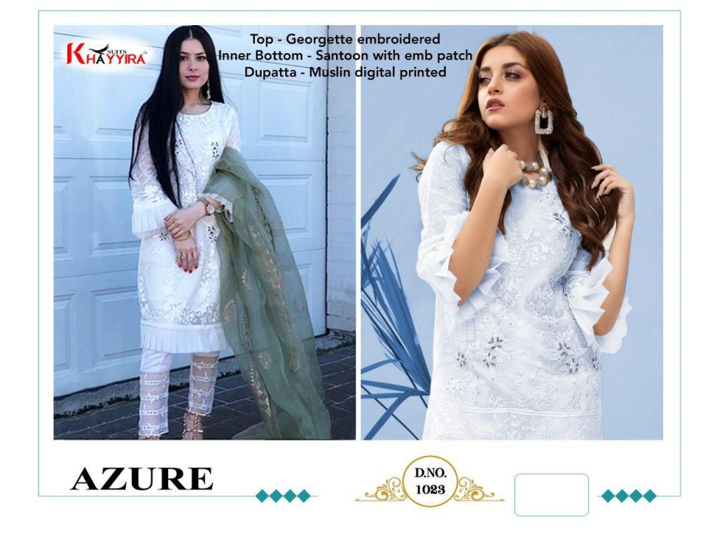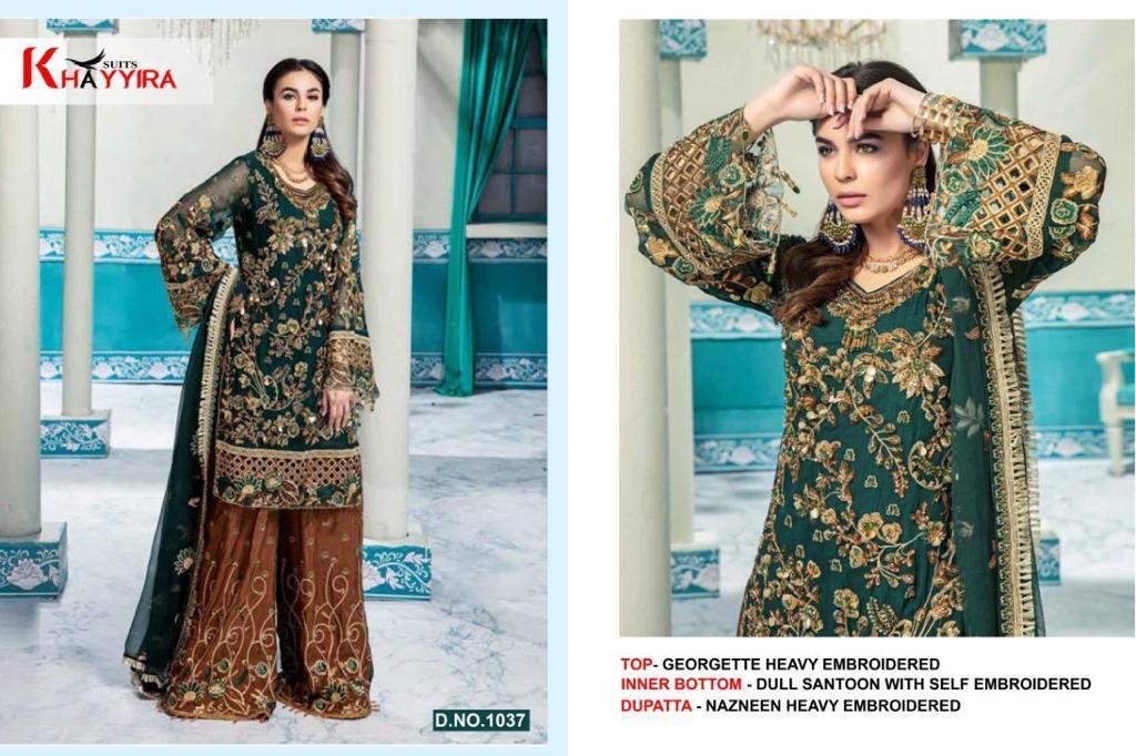 | DETAILS | KHAYYIRA SUITS WHOLESALE SUPPLIER SURAT AVG PRICE : 1251 MINIMUM : 5 PCS |