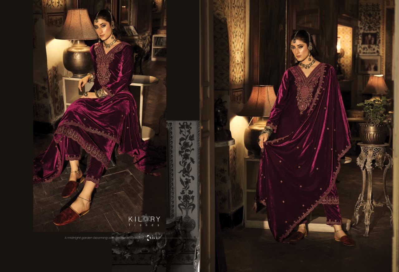 **FABRIC DETAILS:- Top:-PURE VALVET WITH CODING EMBROIDERY WORK* *DUPATTA:- PURE VALVET WITH CODING EMBROIDERY SCALPING WORK* *BOTTOM:- PURE VELVET WITH CODING EMBROIDERY WORK* |