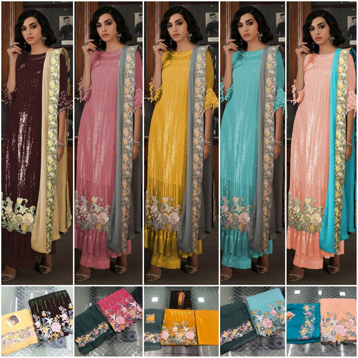 | DETAILS | PICK ANY 3 PCS TOP – *Georgette with beautiful & heavy sequin work all over* *and cutwork embroidery daman lace* ?INNER & BOTTOM – *Santoon* ?DUPATTA – *Chiffon with beautiful embroidery border* ?TYPE – *Semi-stitched* |