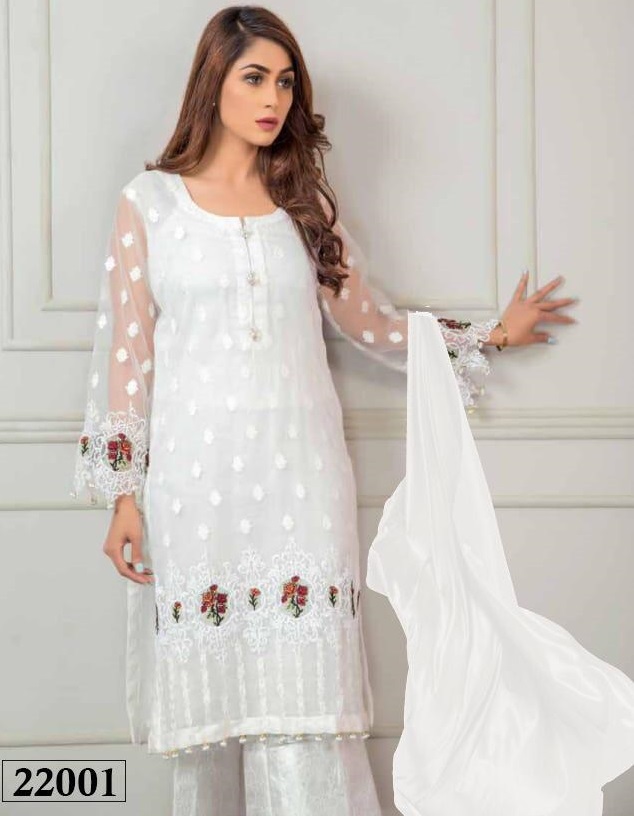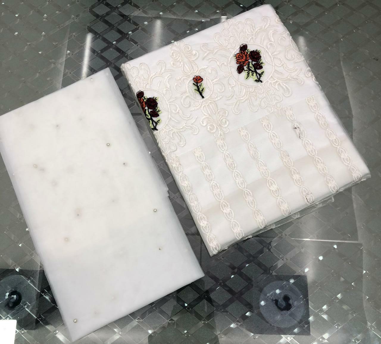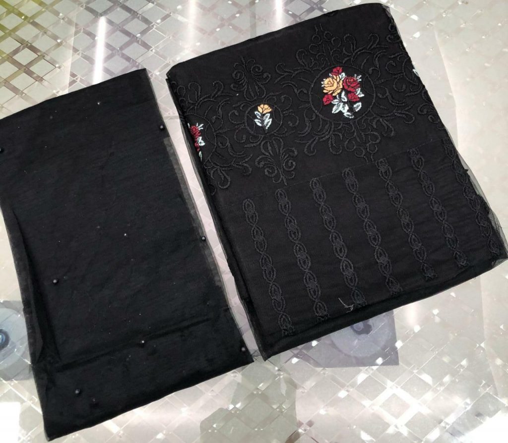 | DETAILS | TOP – *Super Net* with beautiful *embroidery* work ?INNER & BOTTOM- ?DUPATTA – *Super Net* with Pearl work ?Type- Semi-Stitched |