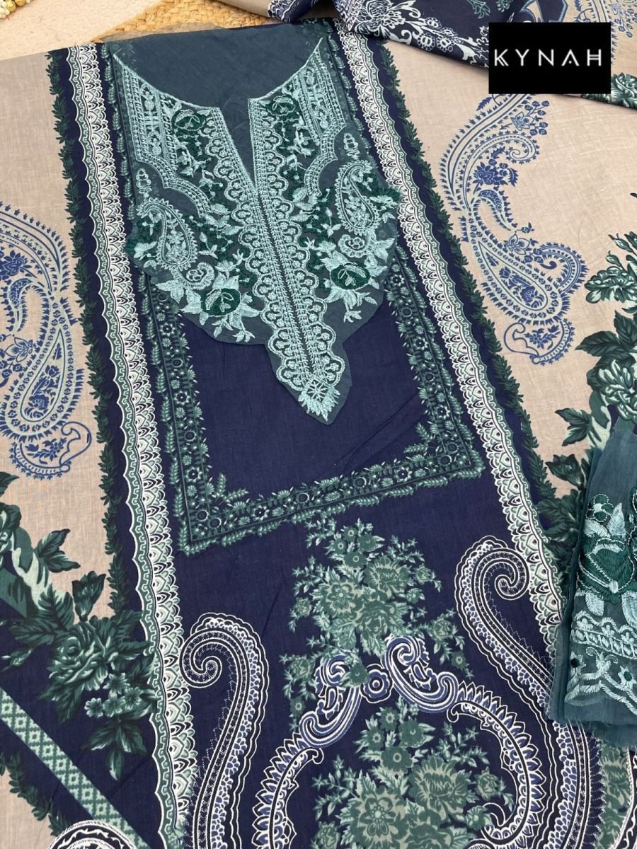 | FABRIC DETAILS | Top : Pure cotton print with exclusive embroidery patchesBottom : Semi lawnDuppta : Chiffon / Cotton |