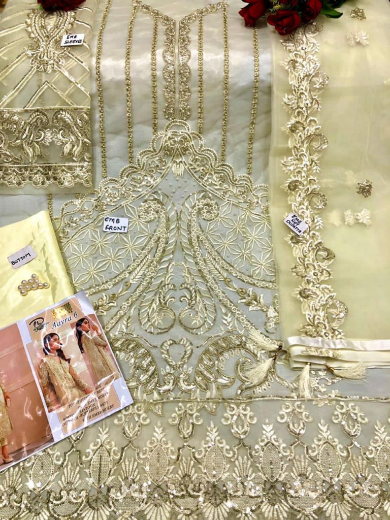 | DETAILS | ?Top: *FRONT* BUTTER FLY NETT With Heavy Embroidery And Sequance Work ?Bottom/inner : Santoon ?Dupp: Butterfly Nett With Heavy Embroidery |