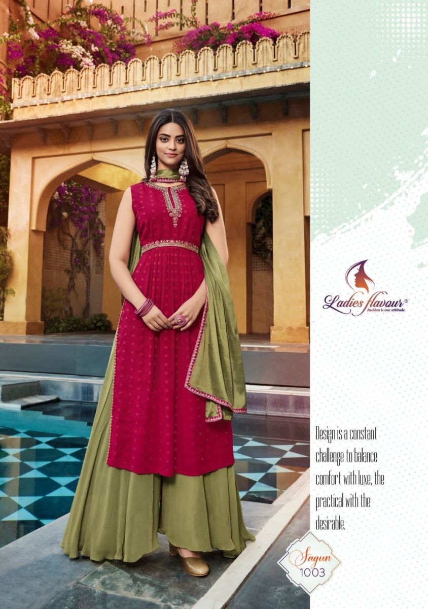 | DETAILS | **Fabric*:-*Fancy Weaving Georgette With Pure Khatli Work* *Note*:- *Sleeve Attached**Bottom*:- *Heavy Georgette* (*Divider Plazo)**Dupptta* :*Pure Chinon Shiffon With Embroidery work Lace (2.30 cut with 36” panna**Size* : *M(38),L(40),XL(42), 2XL(44),3XL(46)** |