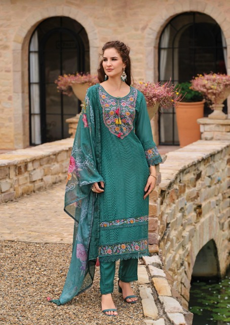 | DETAILS | **FABRIC DETAILS:- TOP* – Embriodery & Handwork on Pure Maslin Schiffli fabric with Pure Cotton Inner *BOTTOM* – Pure Viscose Silk fabric Pant with Bottom Lace work *DUPATTA* – Exclusive Digital Print Organza dupatta with tassels SIZES – *M, L, XL, XXL, 3XL* |