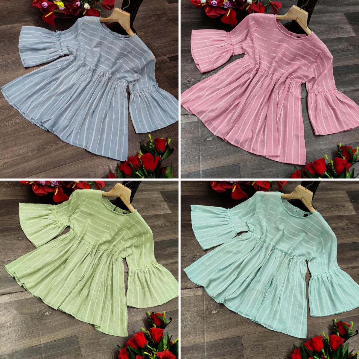 | DETAILS | *Fabric Details* Premium Georgette With Weaving Stripes *Length*- 26 Inch *Flair* - 2 Mtr *Wash care*- Hand & Machine Wash*4 Color Set* *_Price - ₹ 375 + GST _* |