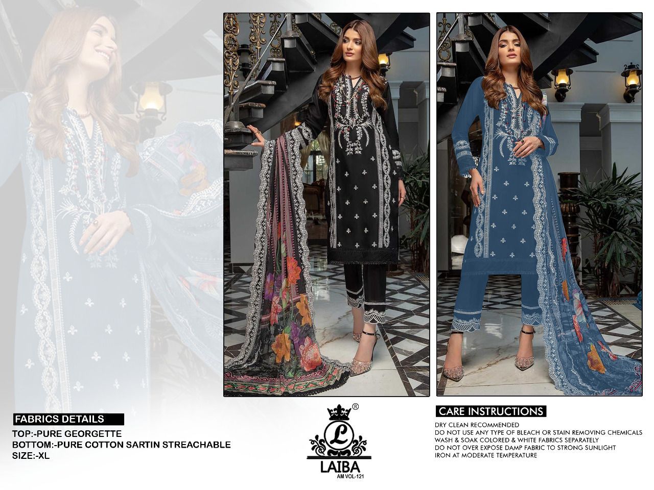 | DETAILS | **Details* *Top*:- Pure Georgette *Pant* :- Pure cotton sartin streachable *Colour* Black *Duppata*:-Cheryberry Chifon *Size Chart* *Top xl size chest* (42) *Bottom xl size* (34-38) |