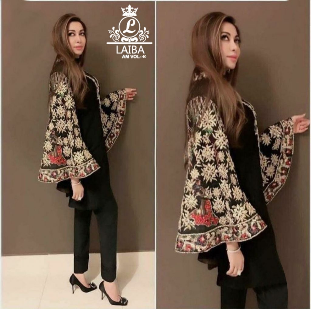 | DETAILS | * LAIBA AM VOL 40* ➖➖➖➖➖➖➖➖ ? *Details*? ✨ *Colour* *BLACK* ✨ *Top xl size chest* (42) ✨ *Rate* *1100* |