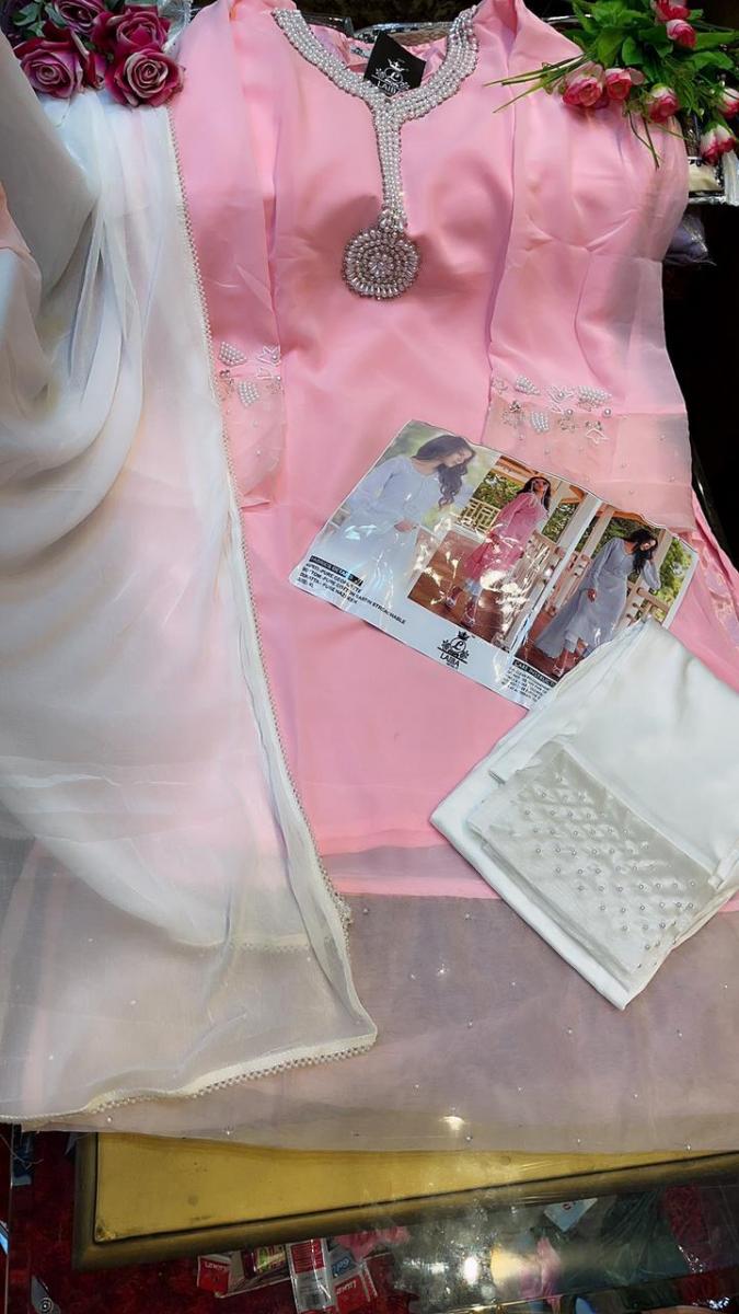 | DETAILS | * *Top*:- Pure Georgette *Inner* :- Pure heavy santoon *Bottom* :- Pure cotton sartin stretchable *Duppata*:-Pure heavy nazneen *Colour* PINK GREY *Size Chart* *Top xl size chest* (42) *Bottom xl size* (34-38) |
