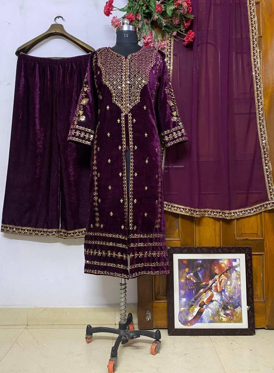 | FABRIC DETAILS | DUPATTA: HEAVY GEORGETTE WITH SEQUENCE EMBROIDERY WORK TOP : HEAVY 9000 VELVET WITH SEQUENCE EMBROIDERY WORK (FULLY STITCHED) PLAZZO: HEAVY 9000 VELVET WITH SEQUENCE EMBROIDERY WORK (FULLY STITCHED)# SIZE DETAILS: Top Fullystitched up to 44 Size & Top length is 45 Inches Plazzo Fully stitched up to xxl Size |