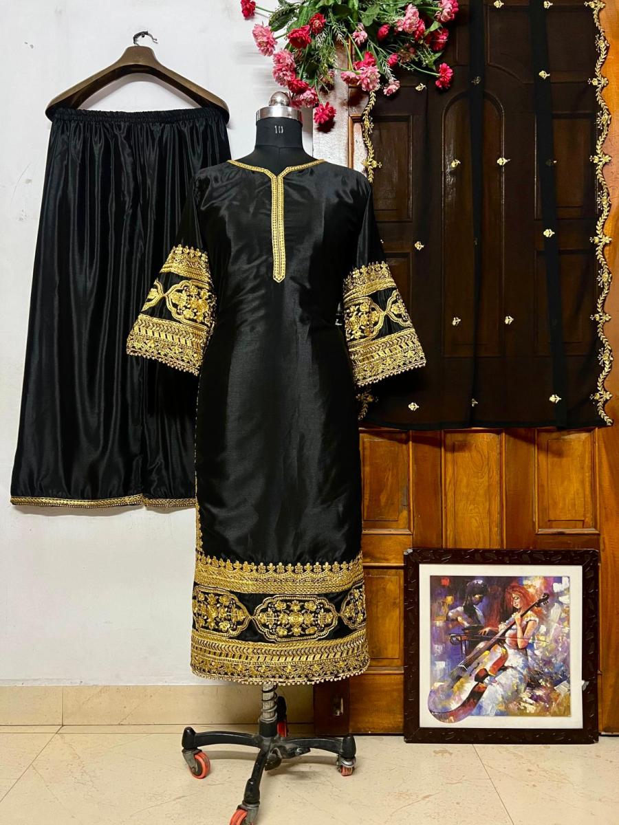 | FABRIC DETAILS | DUPATTA: GEORGETTE WITH EMBROIDERY WORK & CUT WORK AT BORDER TOP : CHINON SILK WITH BEAUTIFUL ZARI EMBROIDERY WORK (FULLY STITCHED) PLAZZO: CHINON SILK WITH EMBROIDERIED LACE WORK (FULLY STITCHED)# SIZE DETAILS:- Top Fullystitched to xxl (44) Size (free size) Top length 47-48 inches Plazzo Fully stitched to xxl (free Size) |
