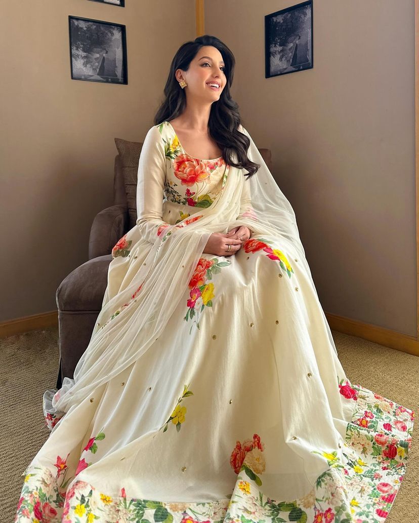 | FABRIC DETAILS | GOWN :HEAVY MUSLIN COTTON WITH DIGITAL PRINT & EMBROIDERY WORK (FULLY STITCH) (3 MTR FLAIR) INNER : MICRO CREPE DUPATTA: HEAVY GEORGETTE WITH DIGITAL PRINT LACE & EMBROIDERY WORK# SIZE DETAILS: Gown Fullystitched up to 44 Size Gown Length is 56-57 inch |