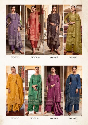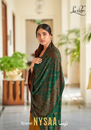 | DETAILS | Description Top: Pure Pashmina kani print (2.50)mtr. Dupatta: Pure pasmina Shawl printed Excellent Premium Quality (2.30 mtrs) Bottom: Spun Pasmina (3.00 mtrs) Beautiful 8 design set |