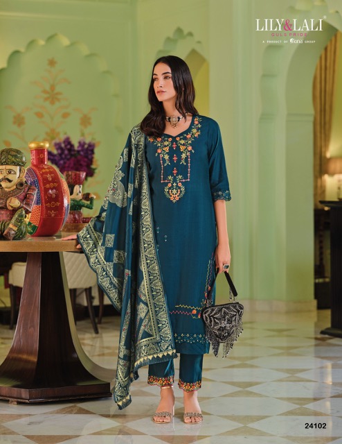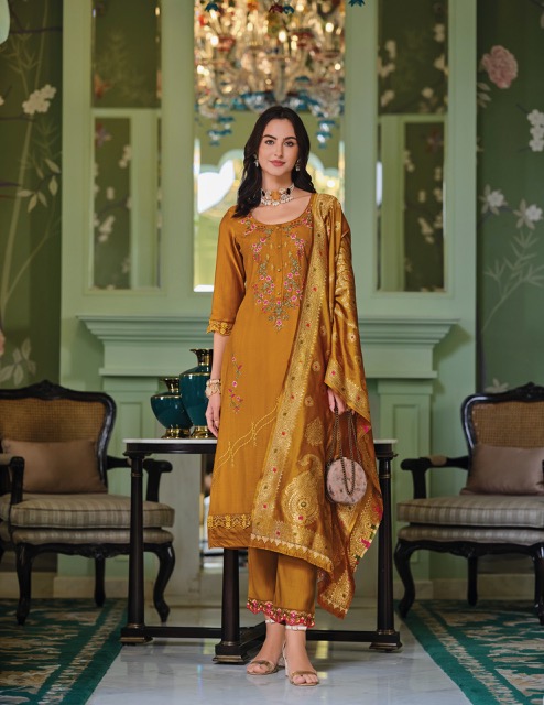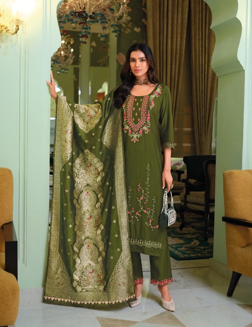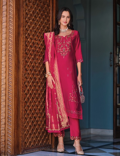 | DETAILS | **FABRIC DETAILS:- *Top* – Handwork And Embroidery On Viscouse Fabrics, Embroidery Lace On Daman & Sleeve *Bottom* – Embroidery Lace On Viscouse Fabrics Pant With Pocket *Dupatta* – Jacquard Dupatta With Meena & Fancy Lace. *Sizes*- M- 38 L- 40 XL- 42 XXL- 44 3XL- 46 |