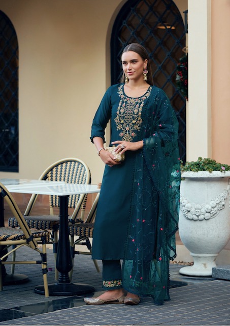 | DETAILS | **FABRIC DETAILS:- Top* – Heavy *Handwork* on *Vichitra Silk* with Inner *Bottom* – * Vichitra Silk Pant* with *Handwork* & Inner *Dupatta* – Heavy *Sequence* & *Embroidery* work on Butterfly Net with 4 Side Crosio Lace *Sizes*- M- 38 , L- 40 , XL- 42 , XXL- 44 , 3XL- 46 |