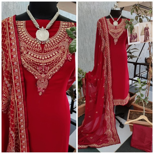 | DETAILS | *FABRIC DETAILS **Top*:- Heavy Faux Georgette with Embroidery Work with stone Work*Sleeves* :- Heavy Faux Georgette with Embroidery Work with stone Work*Bottom*:- Heavy santoon*Inner*:- SANTOON WITH TOP*Dupatta*:- Heavy Faux Georgette with Embroidery Heavy Work*Type*:- Semi Stitched |
