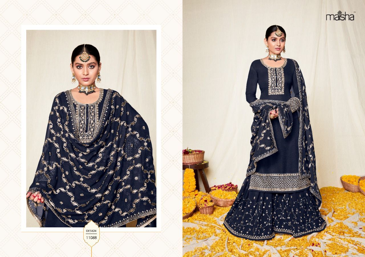 | DETAILS | *Top and bottom - ON PURE georgett , beautiful delicate embroidery with sarvoski workBOTTOM INNER * PREMIUM SHANTOON.. *TOP INNER -premium shantoon*DHUPATTA~ ON pure georgett delicate embroidery and beautiful laces |