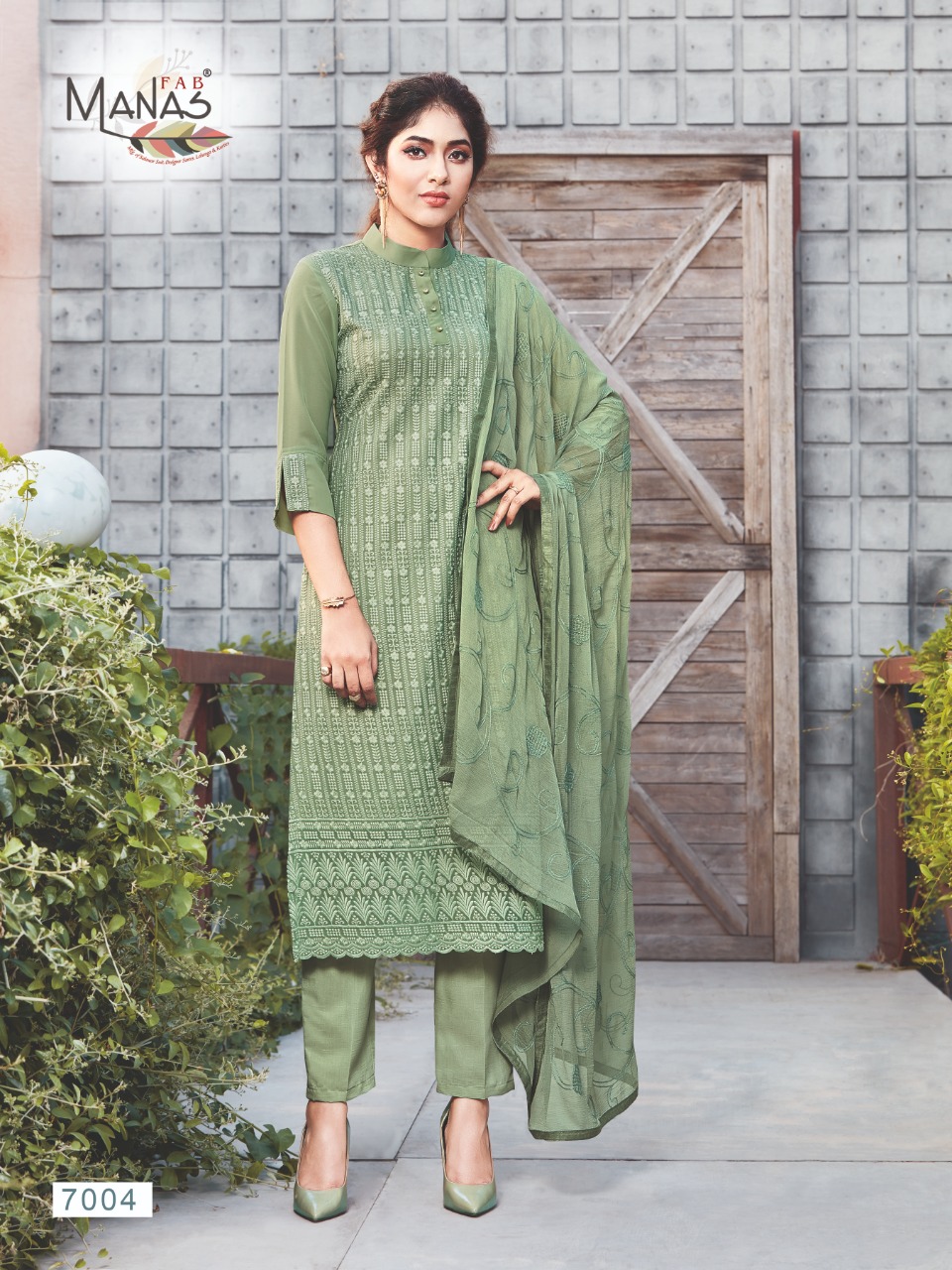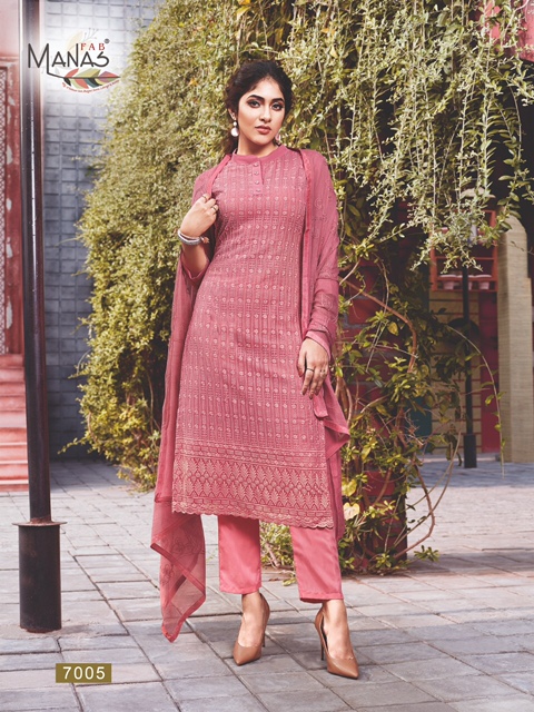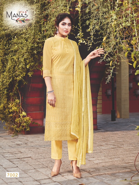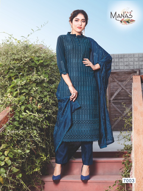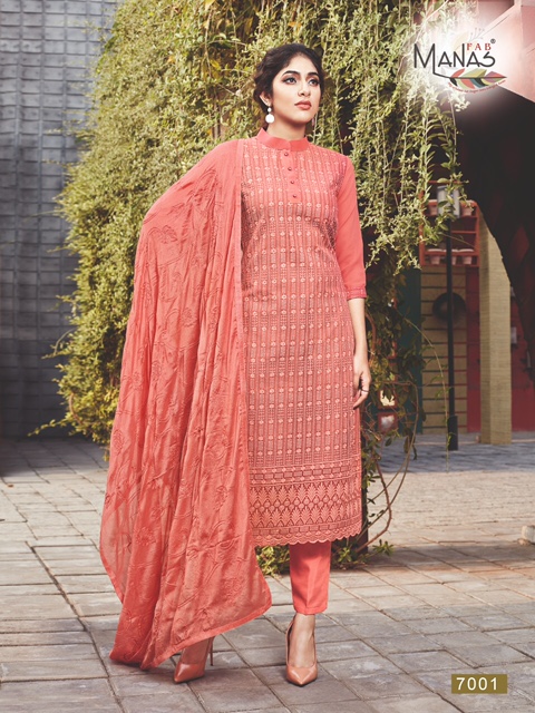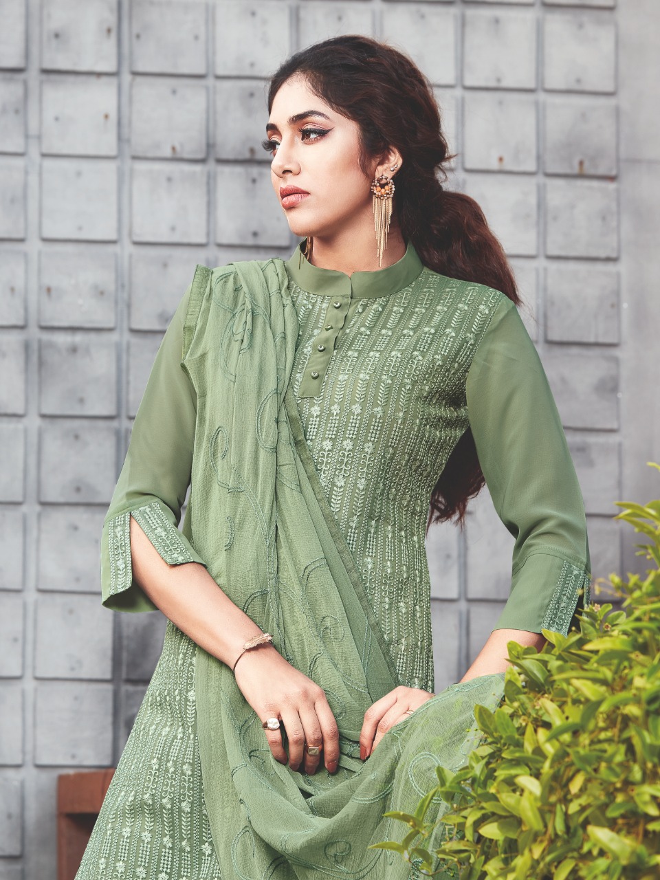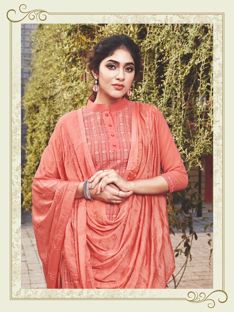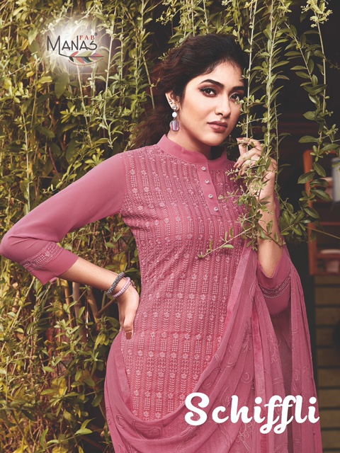 | DETAILS | 👚 Top Length ; *46 +* 🎗Size – *M(38), L(40), XL(42), XXL(44), 3XL(46)* ☣Designs – *6 pcs* 👚Top Fabrics – *Georgette with ineer with schiffli work & back said plain* 👖 Bottom fabric- *Dal santoon* Dupatta: nazneen with chain stitch work with border *(2.25 mt cut) |