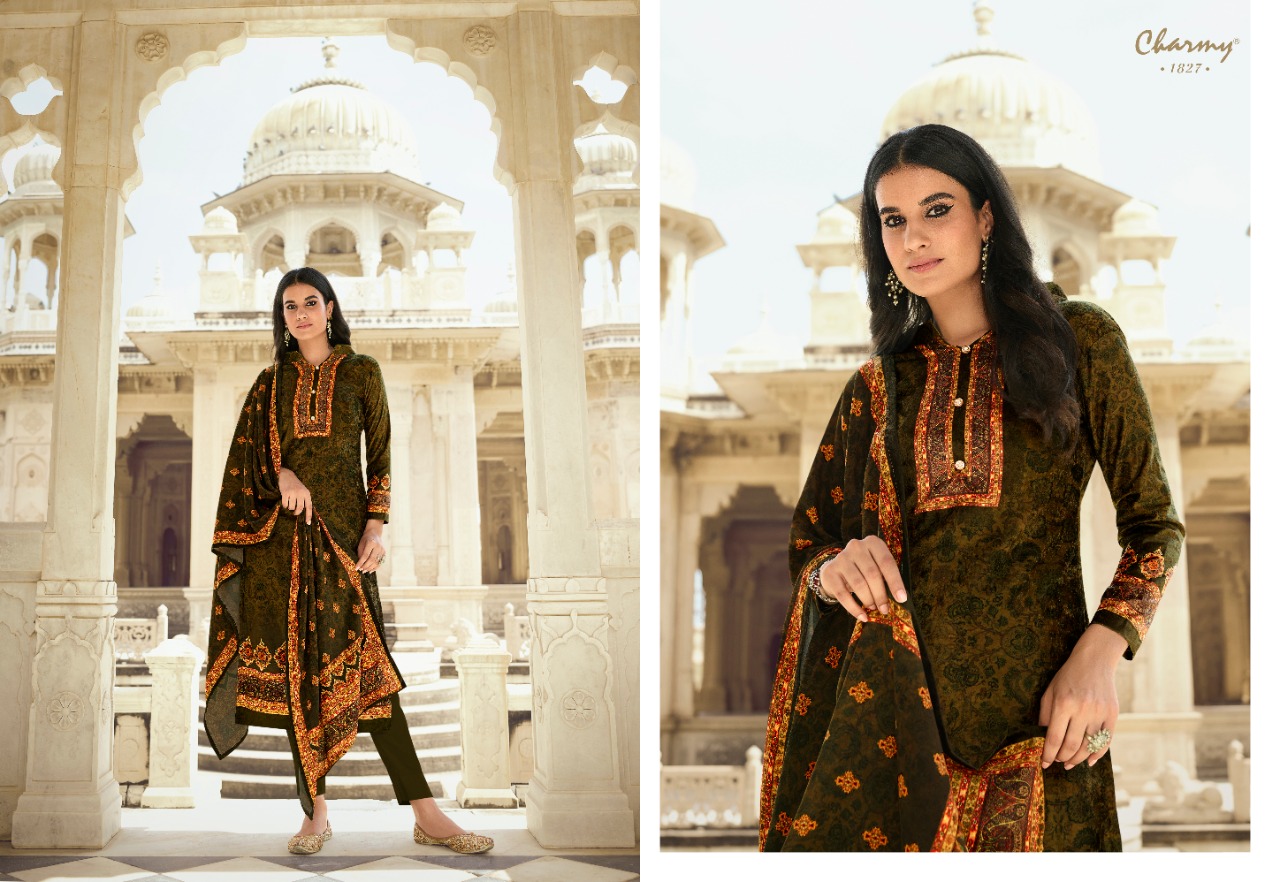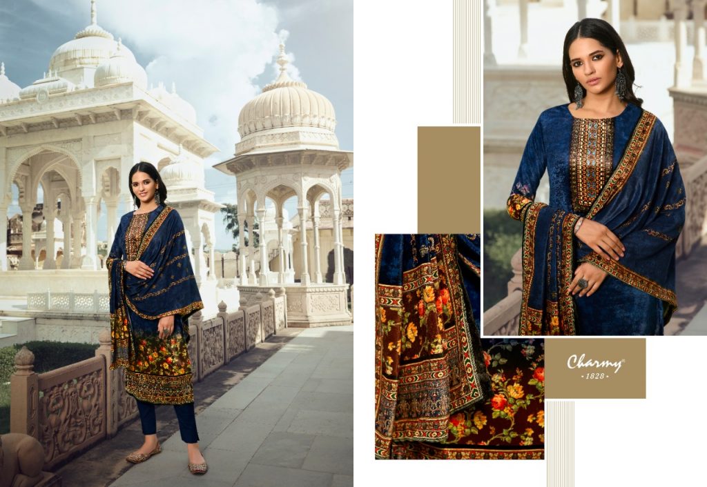 | DETAILS | *Meera trendz LLP* PRESENTS CHARMY TOP: Velvet digital print DUP: Velvet stall dupatta with digital print BOTTOM: Pure Pashmina RATE: 1295/- + GST |