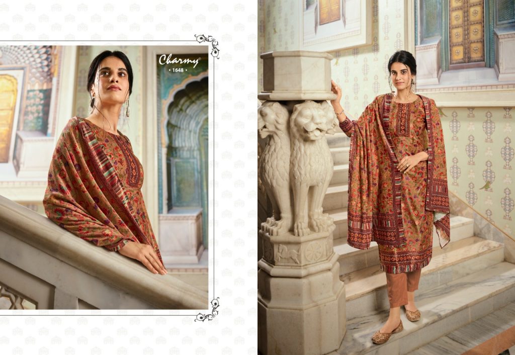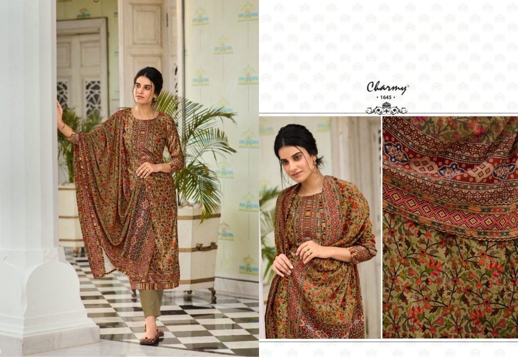 | DETAILS | *Meera trendz LLP* PRESENTS CHARMY TOP: Velvet digital print DUP: Velvet stall dupatta with digital print BOTTOM: Pure Pashmina RATE: 1295/- + GST |