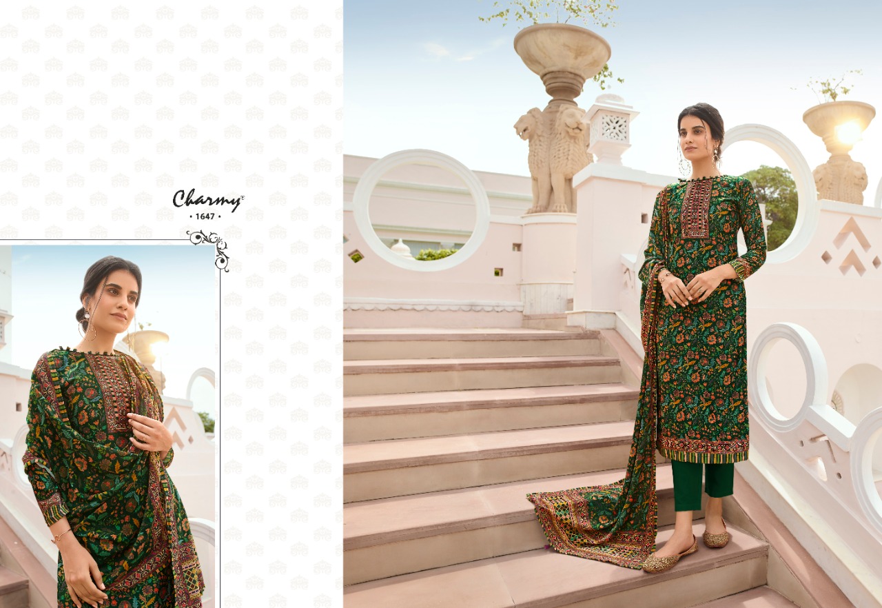 | DETAILS | *Meera trendz LLP* PRESENTS CHARMY TOP: Velvet digital print DUP: Velvet stall dupatta with digital print BOTTOM: Pure Pashmina RATE: 1295/- + GST |