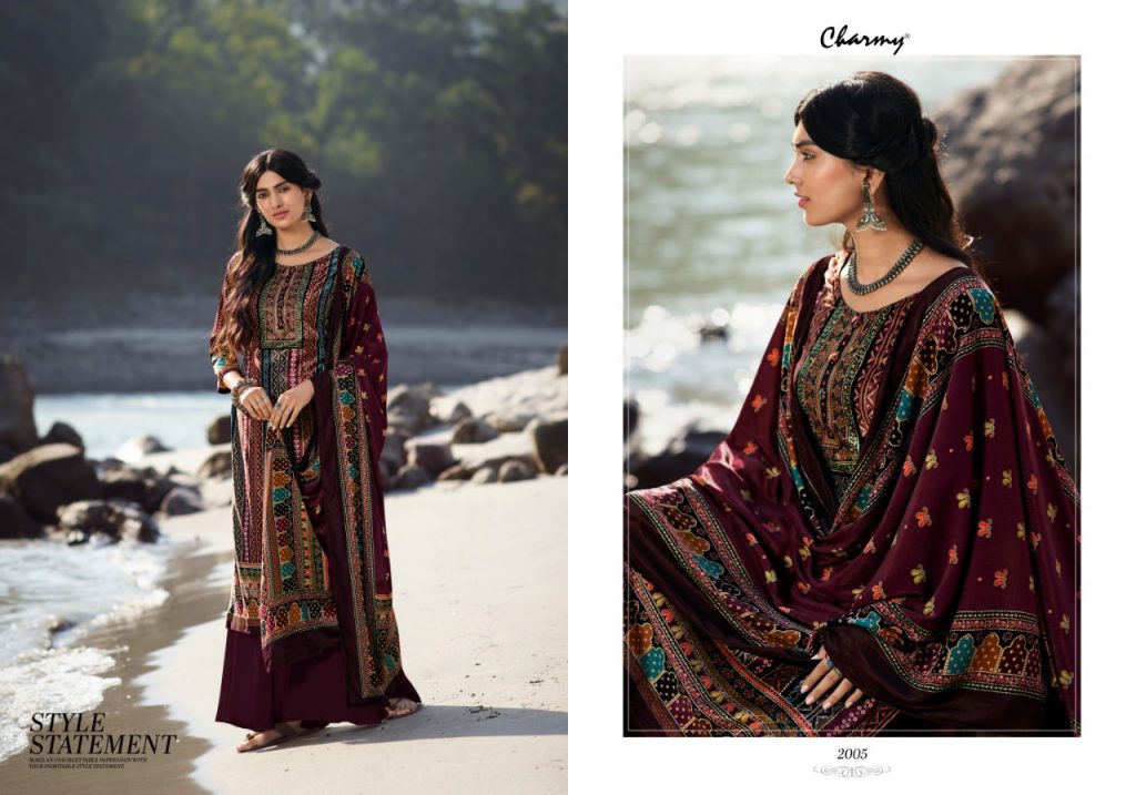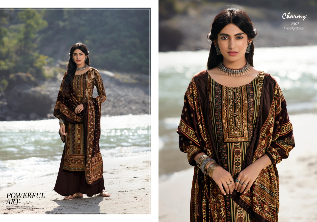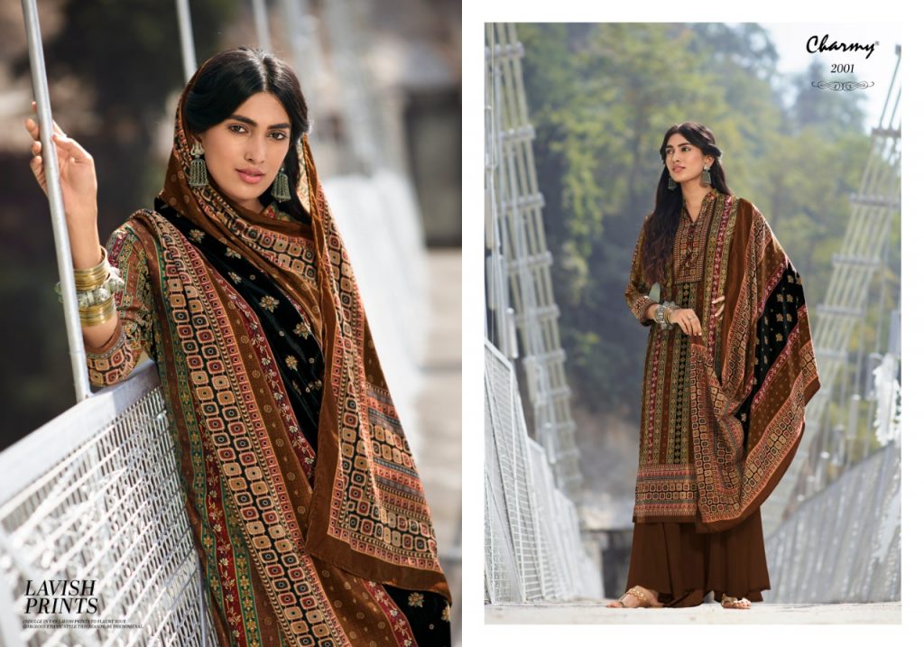 | DETAILS | *Meera trendz LLP* PRESENTS CHARMY TOP: Velvet digital print DUP: Velvet stall dupatta with digital print BOTTOM: Pure Pashmina RATE: 1295/- + GST |