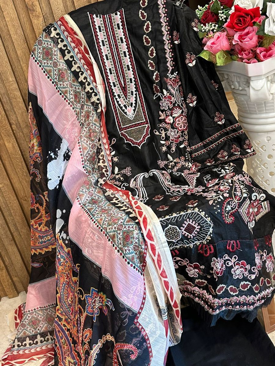 FABRIC DETAILS :- Top: Cambric cotton with heavy embroidery workBottam: cambricDuptta silvet siffon printedMEHBOOB TEX 1090 PAKISTANI SUITS IN INDIA