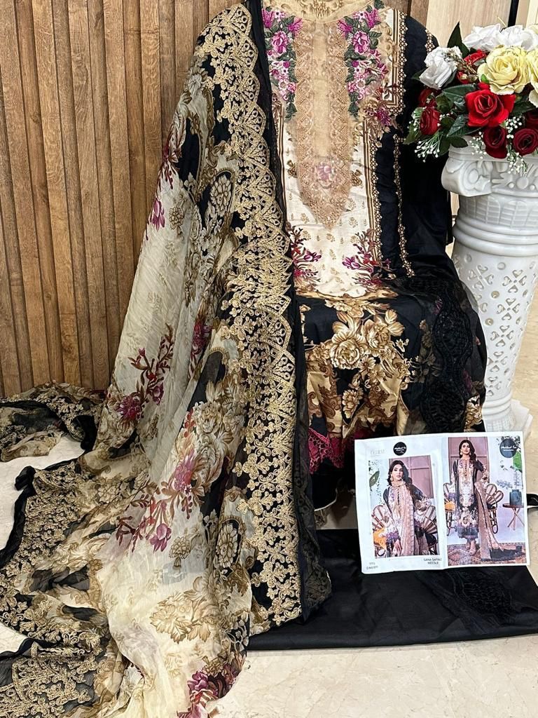 Bottom- SEMI LAWNDupp:CHIFFON PRINTED/ MAL MAL COTTON PRINTED DUPTA With havy embroidered work havy MEHBOOB TEX 1091 SANA SAFINAZ NEEDLE SALWAR SUITS