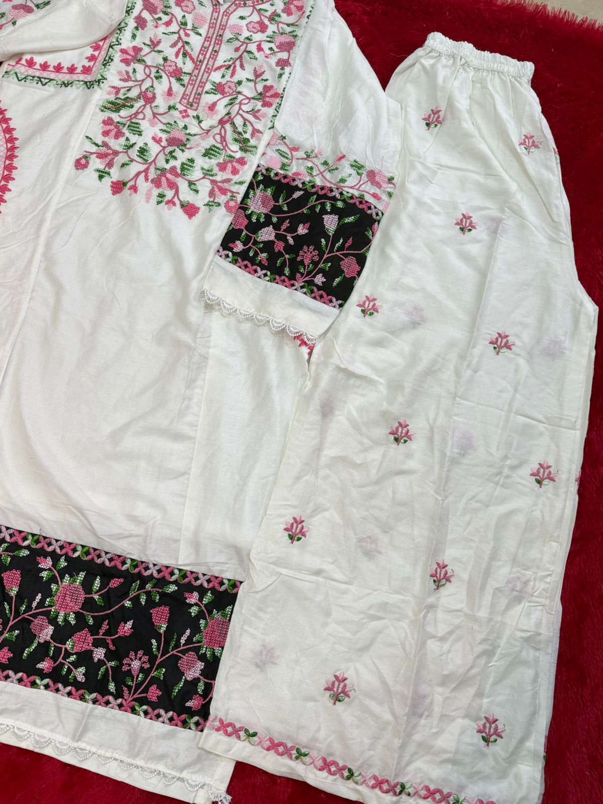Top pure reyon with heavy self Embrodery work with Redymade lace
