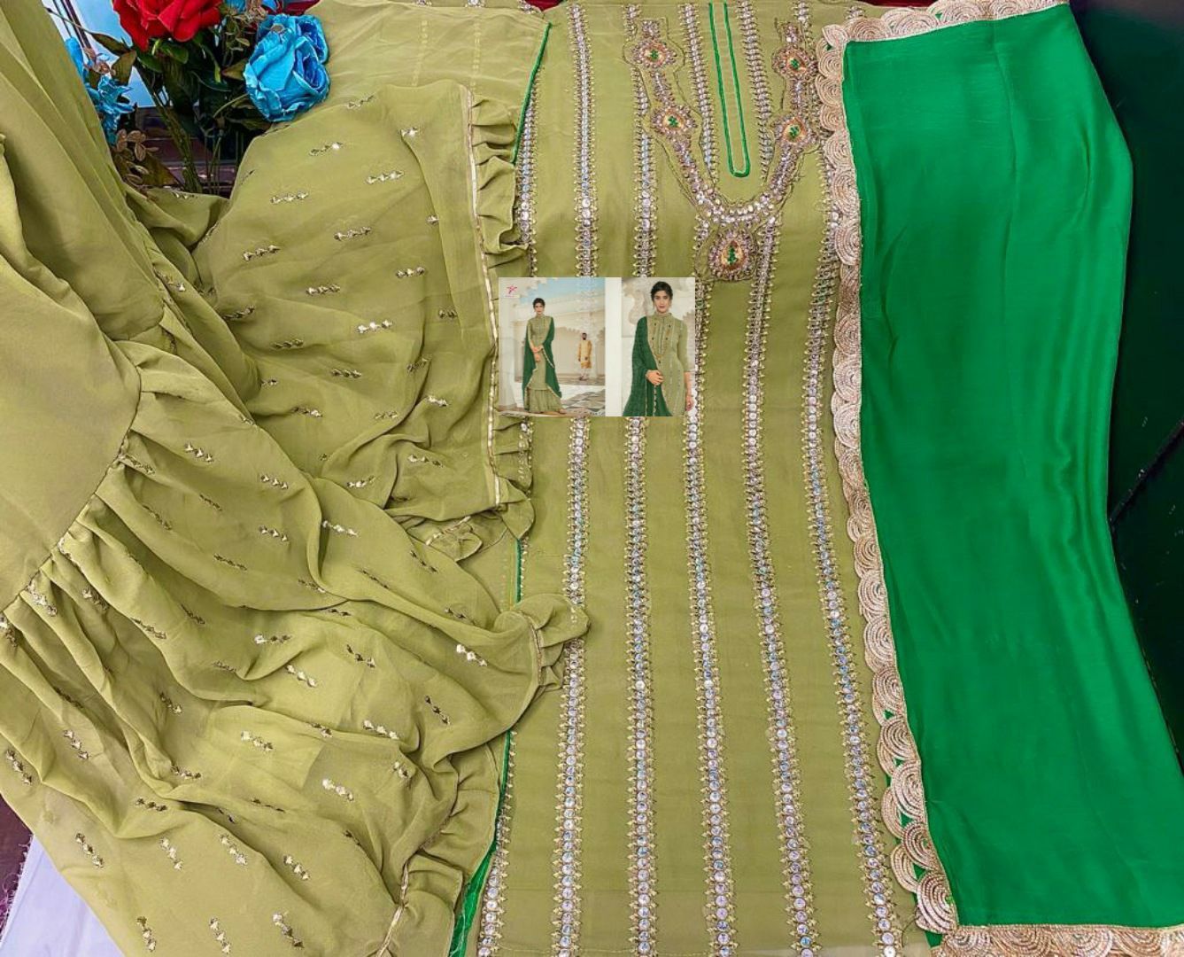 *(With Embroidery + Sequence Work)*Bottom : Garara *(With Full Stitched + Embroidery Work)*inner : SANTOONDupatta : Nazmin