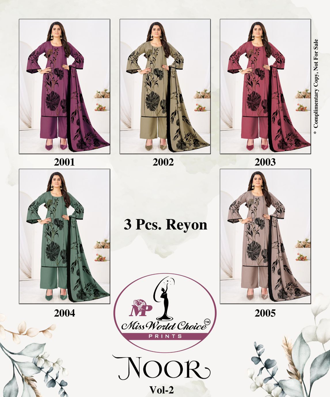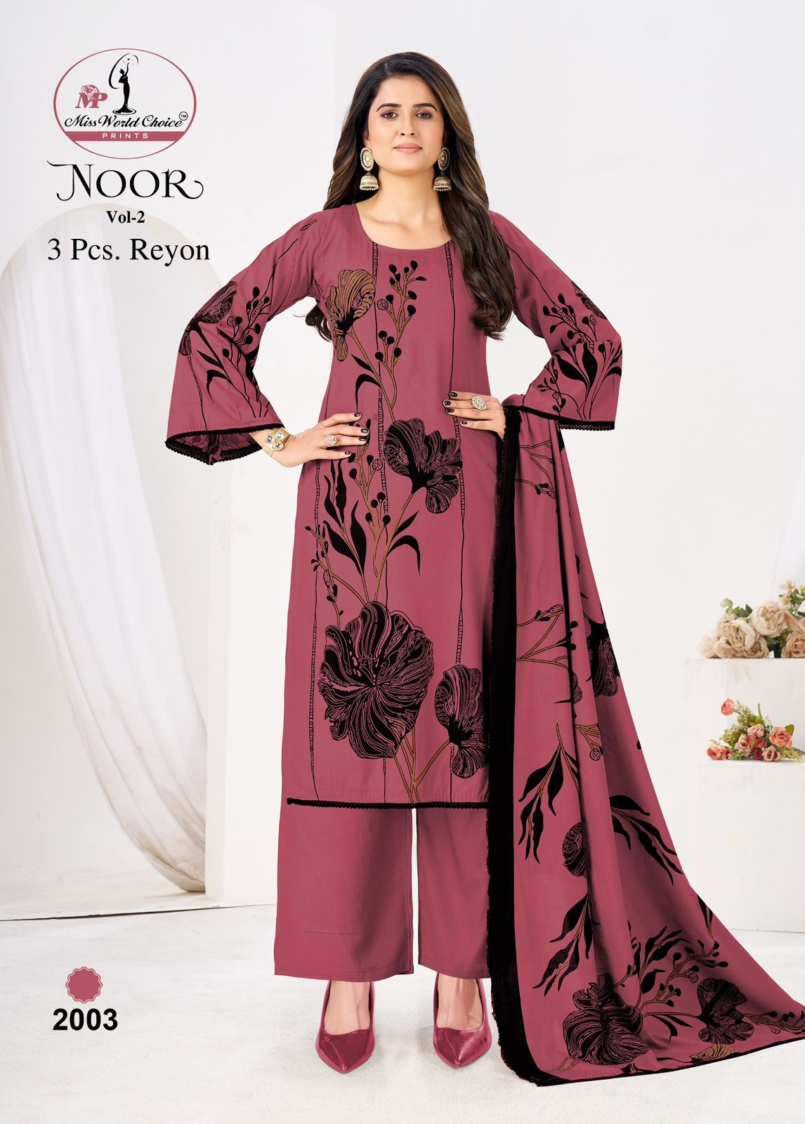 MISS WORLD CHOICE NOOR VOL 2 RAYON SUITS WHOLESALER