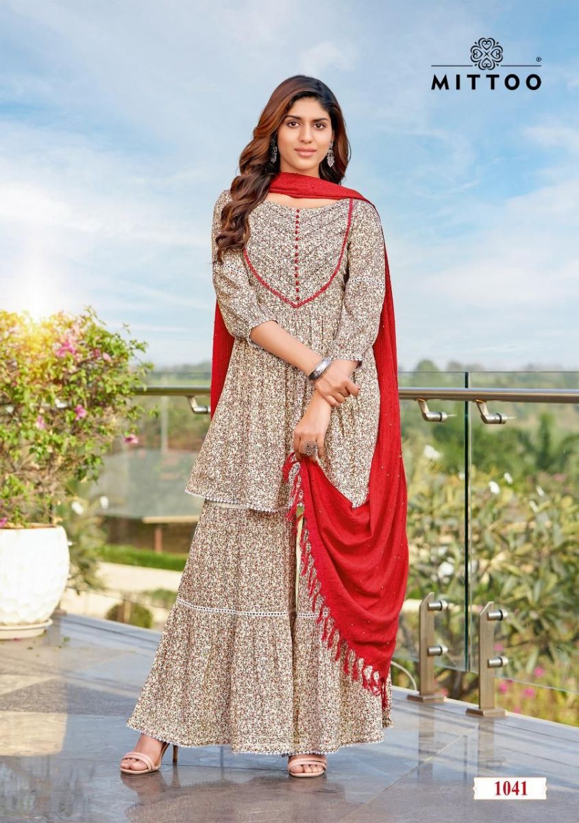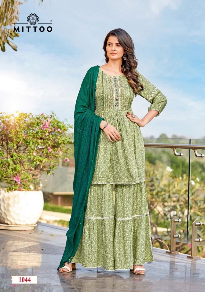 | DETAILS | Fabric Details *Design : 4Peplum with sharara Fabric : Rayon wrinkle print with with khatli work dupatta: Viscose weavingSize : L(40) |