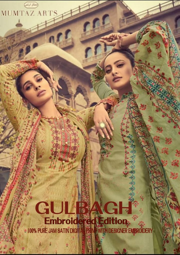| DETAILS | Thank you for your support _*MUMTAZ ARTS™️*_ Name – *GULBAGH* *DESIGNER EMB ON SHIRT* Fabric details – Designs – 06 pcs *DESIGNER EMB ON TOP* |