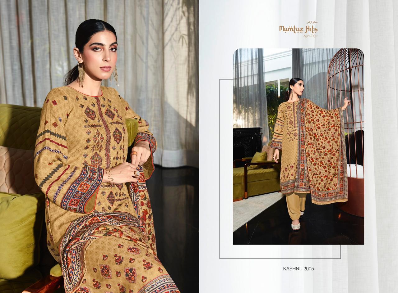 MUMTAZ ARTS KASHNI TWIL PASHMINA PRINT EMBROIDERY SUITS WHOLESALE